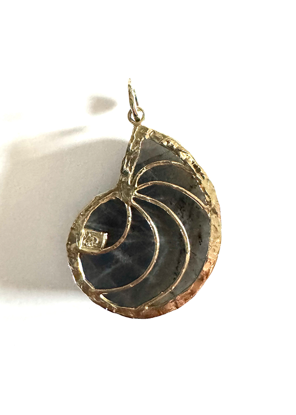 Ciondolo Ammonyte 2, labradorite e bronzo giallo.